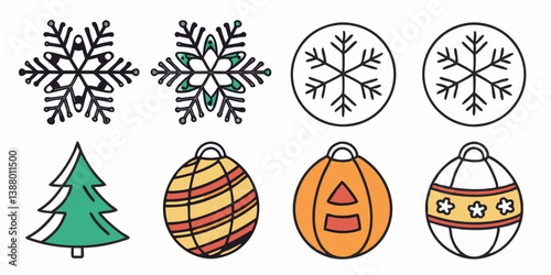 Cartoon Christmas Winter Vector Graphics: Snowflakes, Tree, Decorations & Baubles