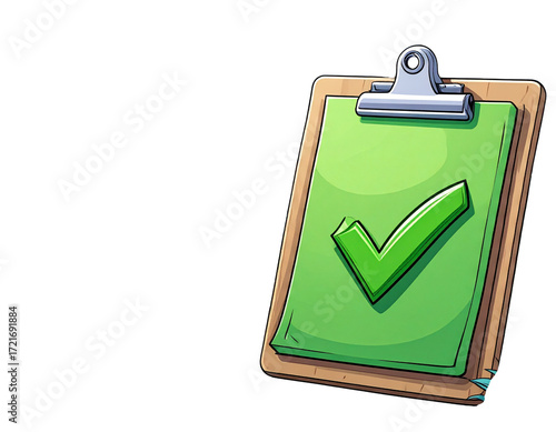 Cartoon Clipboard with Bold Checkmark Icon, PNG