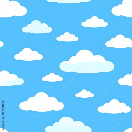 Cartoon clouds in a repeating pattern against a blue background