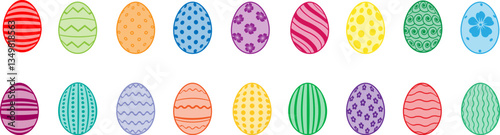 Cartoon colorful Easter eggs vector set . Collection of Easter eggs simple icons. Painted icons of eggs with ornament in flat design .