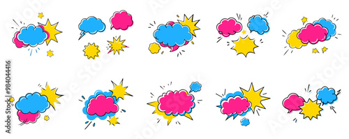 Cartoon Comic Burst Clouds and Speech Bubble Set Illustration