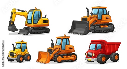 Cartoon Construction Vehicles Isolated on White Background Providing Graphic Elements