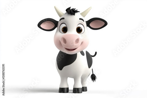 Cartoon Cow Standing and Smiling Isolated on White Background Studio Shot