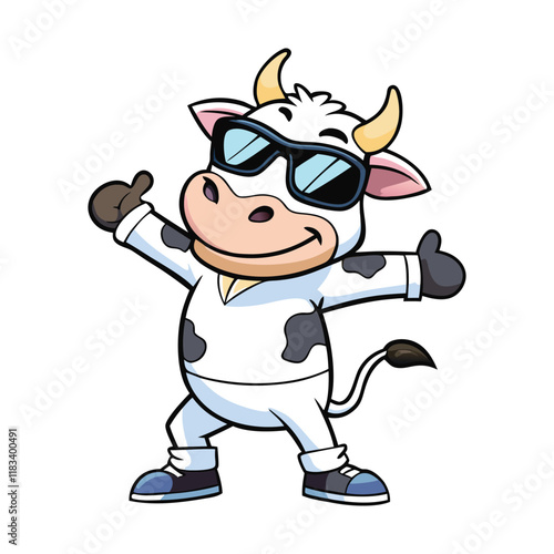Cartoon cute cow is in enjoying pose wearing sunglass vector art illustration.eps