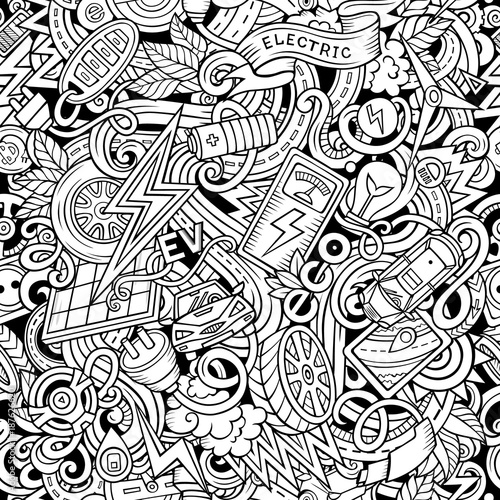 Cartoon cute doodles hand drawn Electric vehicle seamless pattern