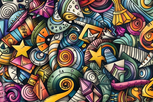 Cartoon cute doodles of geometric shapes arranged in a mesmerizing tessellation, Generative AI