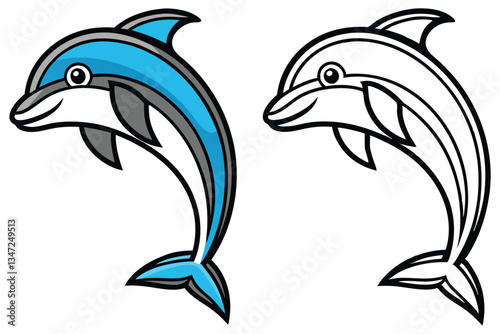 Cartoon Dolphin Illustration Leaping Color and Outline Versions for Kids