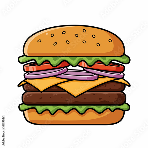 Cartoon Double Cheeseburger with Toppings