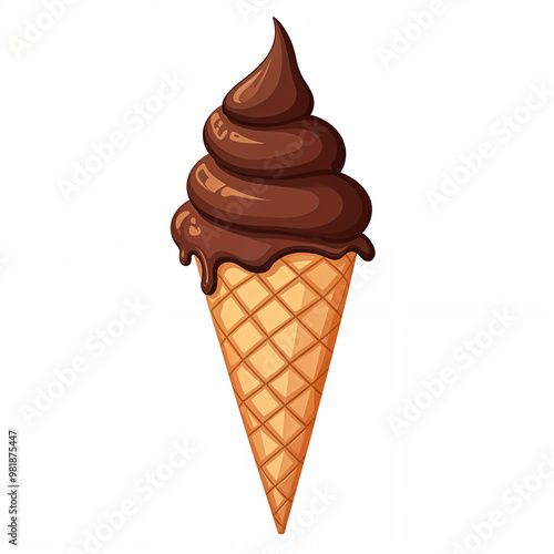 Cartoon Drawing of Blueberry Ice Cream in Waffle Cone