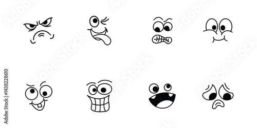 Cartoon Faces with Various Emotions, Vector cartoon faces, abstract design mascots