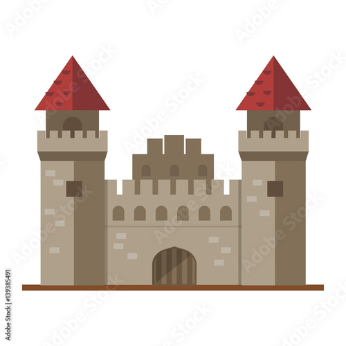 Cartoon fairy tale castle tower icon cute architecture fantasy house fairytale medieval and princess stronghold design fable isolated vector illustration.