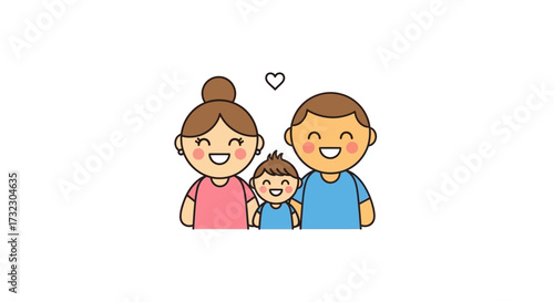Cartoon family illustration conveying warmth, affection, and togetherness representing joyful