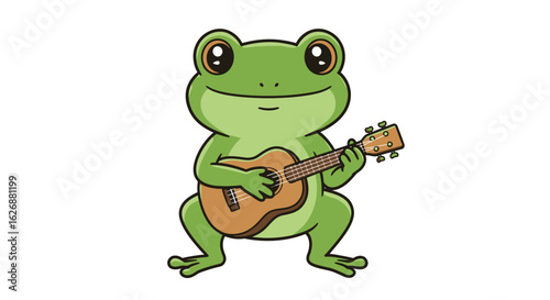 Cartoon Frog Playing a Ukulele with a Cheerful Expression.