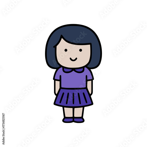 Cartoon Girl Character – Minimalist Illustration with Pleated Skirt and Straight Hair