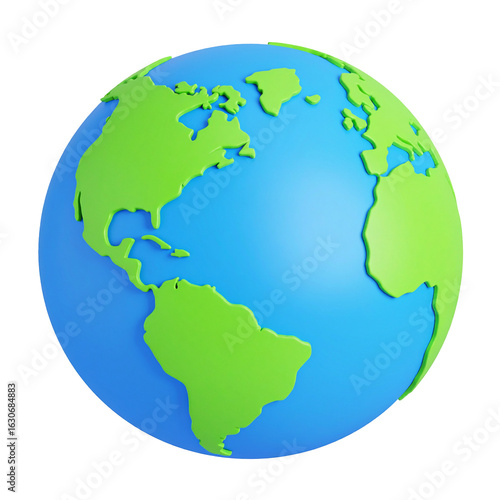 Cartoon globe displaying continents, oceans, and land on transparent background