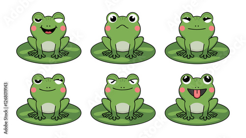 Cartoon Green Frogs in Different Playful and Expressive Poses