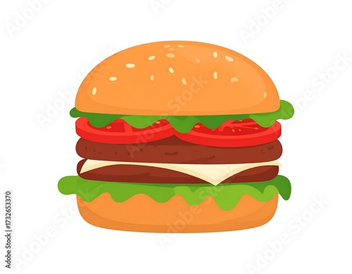 Cartoon hamburger with cheese, lettuce, and tomato
