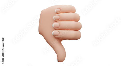 Cartoon hand giving a thumbs down gesture with a french manicure for visual communication and user interface design
