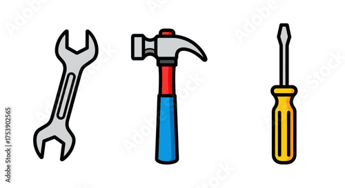 Cartoon Hand Tools Illustration With Wrench Hammer and Screwdriver