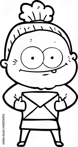 cartoon happy old woman