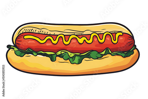 Cartoon Hot transparent background Dog with Mustard and Lettuce on a