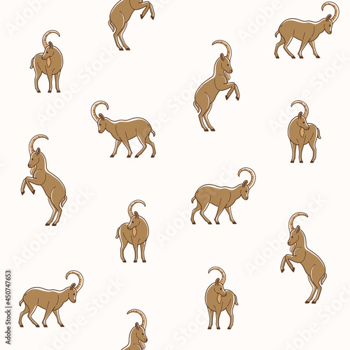 Cartoon ibex - seamless trendy pattern with illustration of ibex. Contour vector illustration for prints, clothing, packaging and postcards.