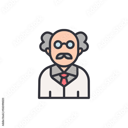 Cartoon Icon Of An Elderly Scientist Or Professor With Glasses