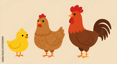 Cartoon Illustration Depicting Chicken, Hen, and Chick on a Plain Background