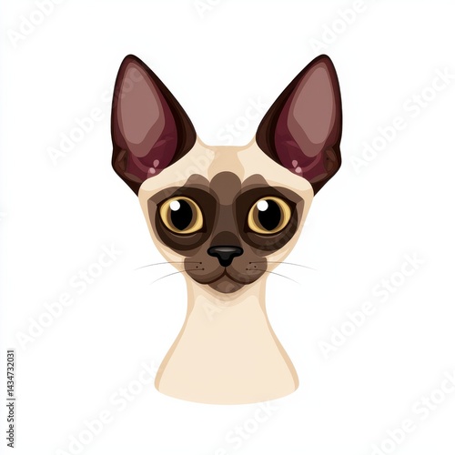 Cartoon illustration of a cat with large amber eyes and beige fur