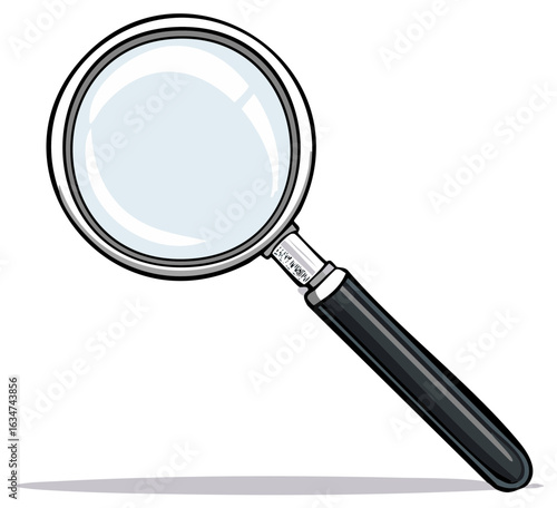 Cartoon illustration of a classic magnifying glass for searching and discovery