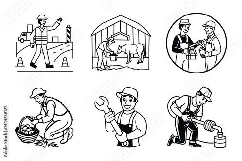 Cartoon illustration of a man and woman with a sword on the street in a simple sketch style, designed for children and icon sets