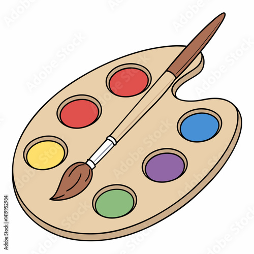 Cartoon Illustration Of A Paint Palette With Colorful Paints And Brush