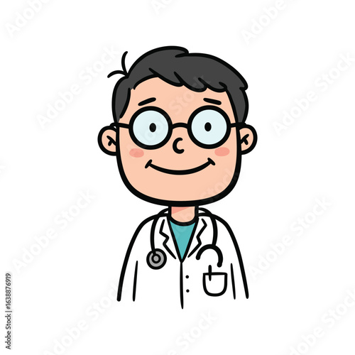 Cartoon illustration of a young male asian doctor with glasses in a white coat – stock vector flat illustration