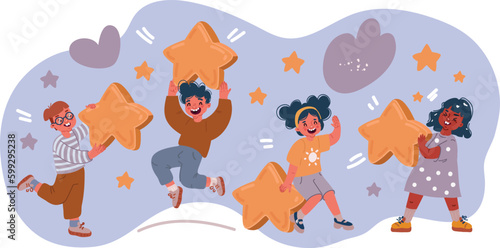Cartoon Illustration of kids hold stars