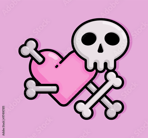 cartoon line style illustration of heart pierced with bones and skulls as a symbolic warning of dangerous and toxic love. Clip art can be used for t shirt, clothing, print, banner, invitation, sticker