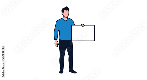 Cartoon man holds blank sign for message announcement or advertising