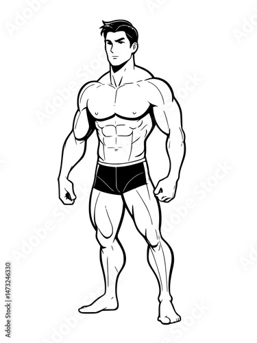 cartoon man with muscular torso, illustration