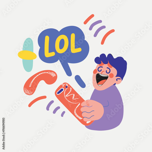 Cartoon of a person laughing with "LOL" text bubble and holding a red phone.