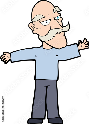 cartoon old man spreading arms wide