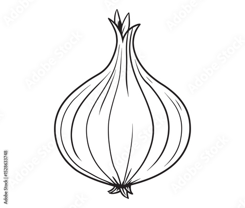 Cartoon onion on white background. Simple black and white onion sketch.