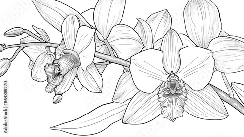 Cartoon orchid flower, outlined for coloring, on a white background.