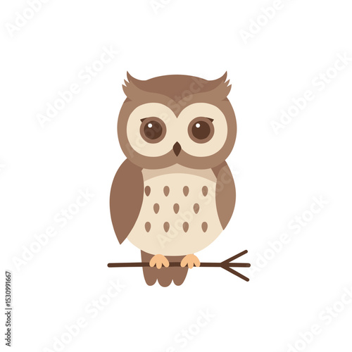 Cartoon owl with big eyes and brown feathers, front facing, against a plain white background