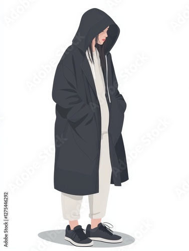 Cartoon people hooded woman illustration isolated on solid white background