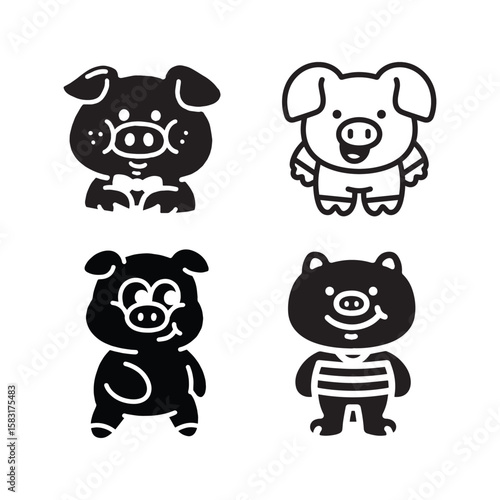 Cartoon pig animal illustration vector graphic piglet design cute pig character funny pig drawing art