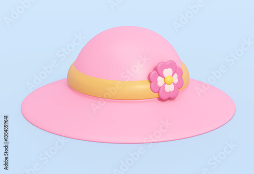 Cartoon pink lady hat isolated on blue background. 3D illustration