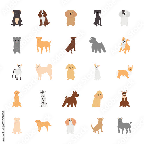 cartoon poodle and dogs icon set, flat style