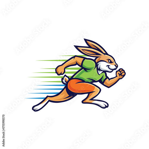 Cartoon Rabbit Character Running Fast with Speed Lines and White Background motion