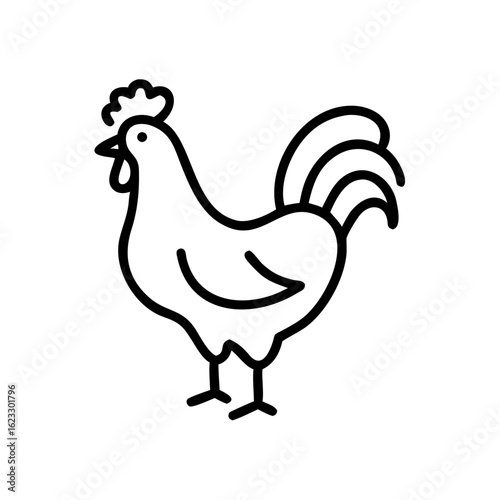 Cartoon rooster icon in simple black outline design
