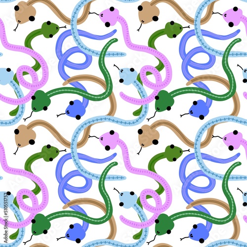 Cartoon seamless snakes pattern for textiles and packaging and gifts and cards and linens and kids and wrapping paper