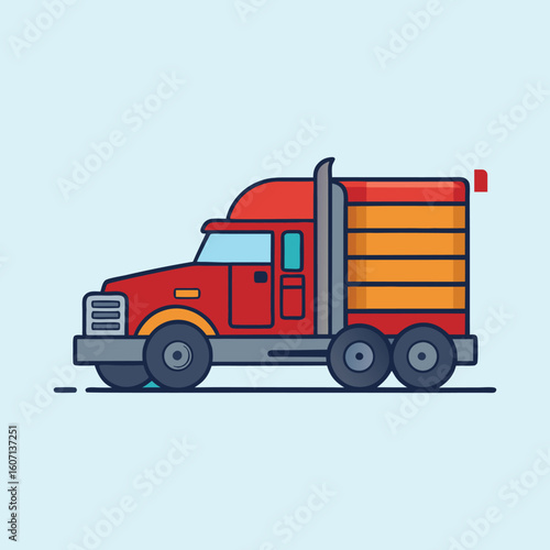 Cartoon Semi Truck with Cargo on a Light Blue Background